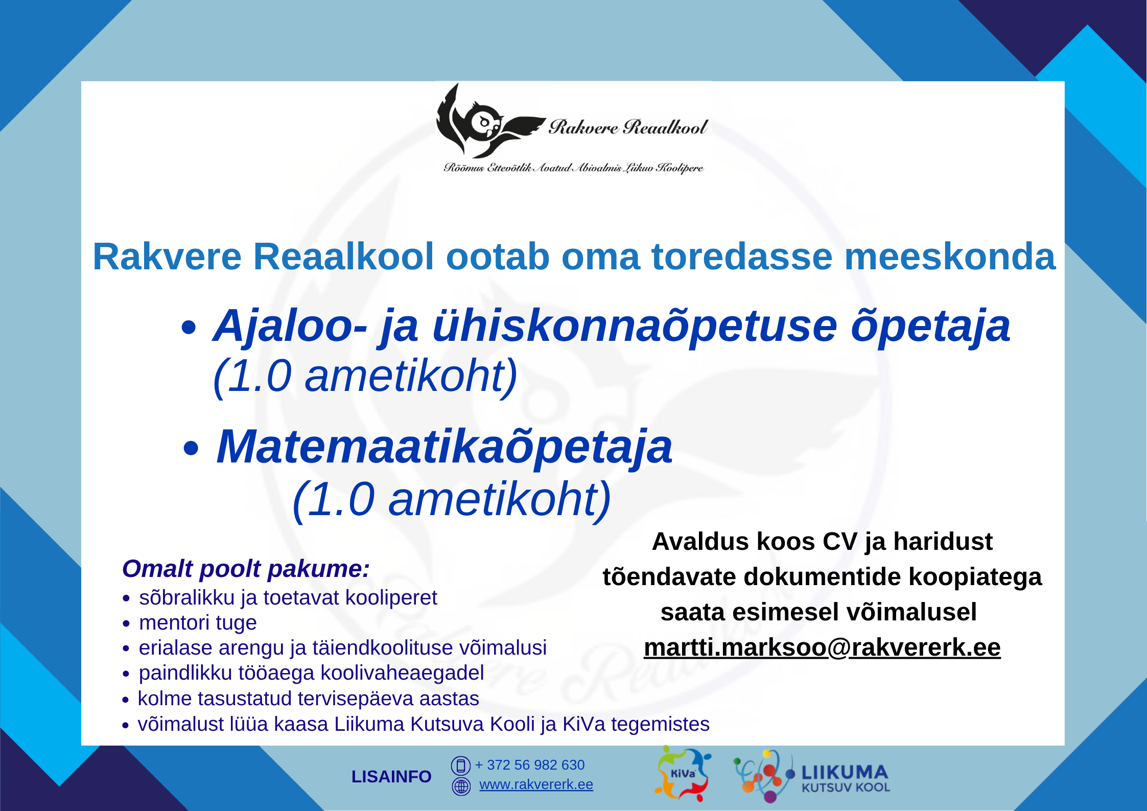 Võõrustasime külalisi Eesti Hariduse Kvaliteediagentuurist (HAKA) Loomise kuupäev 03.04.2026 Autor Sirli Vahula RRK noormehed olid Lääne-Virumaa koolide 3x3 korvpallivõistlustel edukad Loomise kuupäev 02.04.2026 Autor Sirli Vahula RRK 3.-5. klasside õpilased esinesid inglise keele etluskonkursil edukalt Loomise kuupäev 01.04.2026 Autor Sirli Vahula RRK õpilaste tööd jõudsid Virumaa laste luulekogumikku Loomise kuupäev 01.04.2026 Autor Sirli Vahula Vaata rohkem