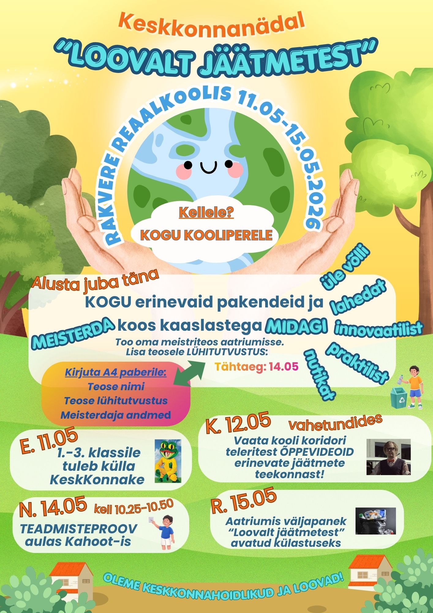Rakvere Reaalkooli loodusainete meeskond annab teada, et 11. maist kuni 15. maini toimub koolis keskkonnanädal "Loovalt jäätmetest"