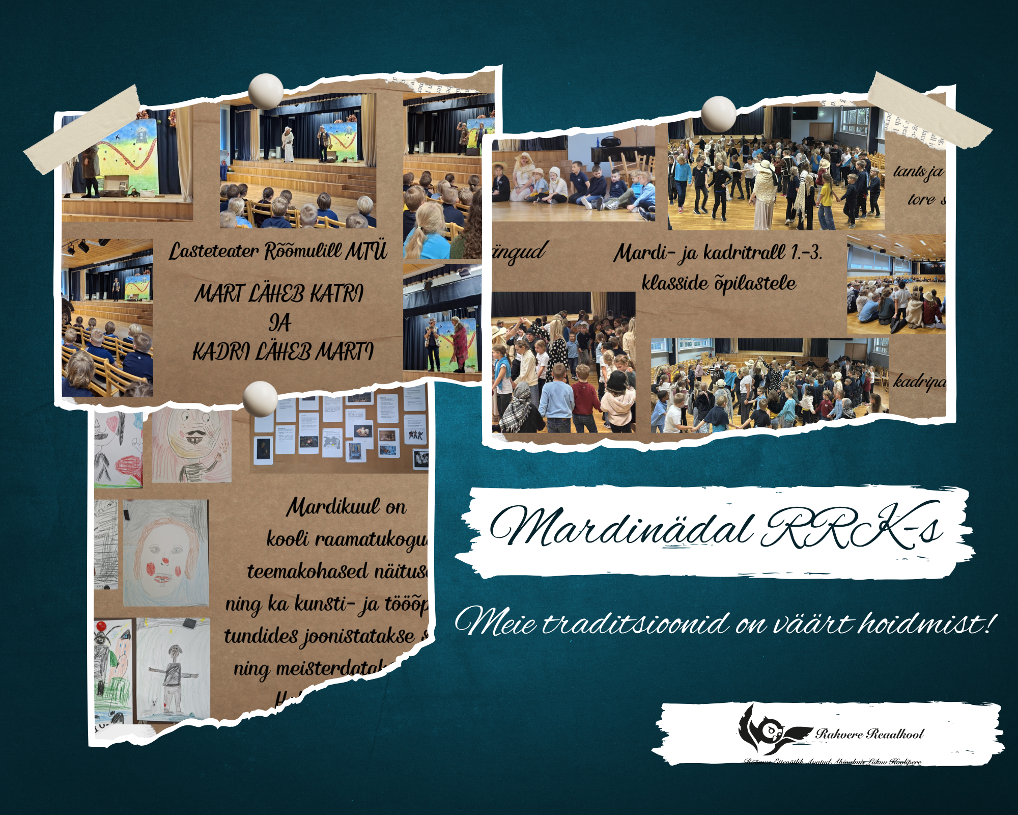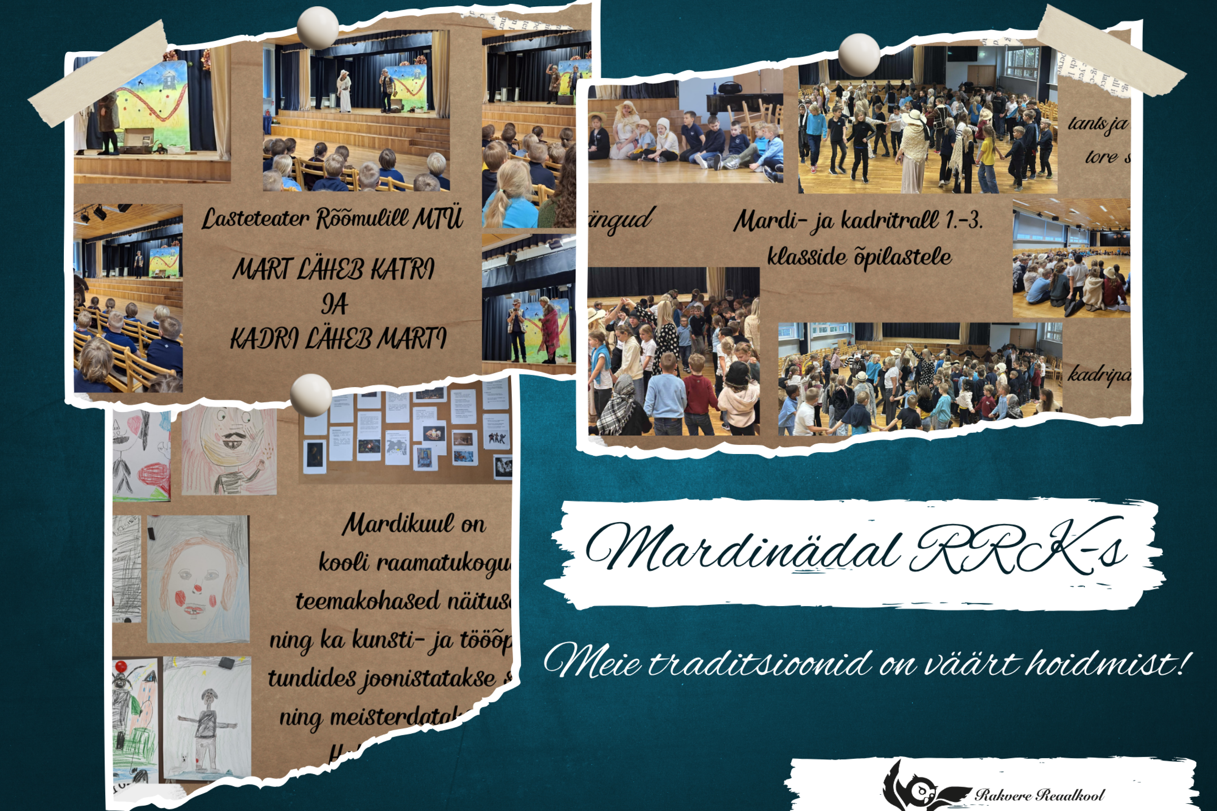 13. novembril käisid 1.–3. klassidel külas lasteteater Rõõmulill näitlejad, et esitada lõbus ja õpetlik näidend „Mart läheb katri ja Kadri läheb marti“. Lugu rääkis lastest nimega Kadri ja Mart, kes avastasid vanaema kohvrist põnevaid riideesemeid ning lisaks veel raamatu, millest võis leida huvitavaid teadmisi eestlaste mineviku ja tänapäeva rahvakommetest ja tavadest. Etendus oli täis rõõmu ja ühist laulu ning tantsu. Lapsed said vahetu kogemuse kaudu teada, et mardi- ja kadripäev ei ole vaid lõbus maskeerumise pidu, vaid kannab edasi olulisi väärtusi – hoolivust looduse, loomade ning kogukonna vastu.